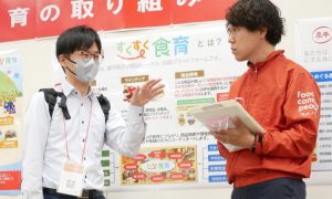 地産地消コーナーが特に印象的でした。どの原料がどのように加工されるのかが分かりやすく紹介されており、大変参考になりました。展示全体の内容についても、他社の展示会と比較して充実しており、しっかりと作り込まれている印象を受けました。特に自社ブースでは、学校給食における現状の課題への対策や、今後の新たな提案が紹介されていて、とても勉強になりました。
