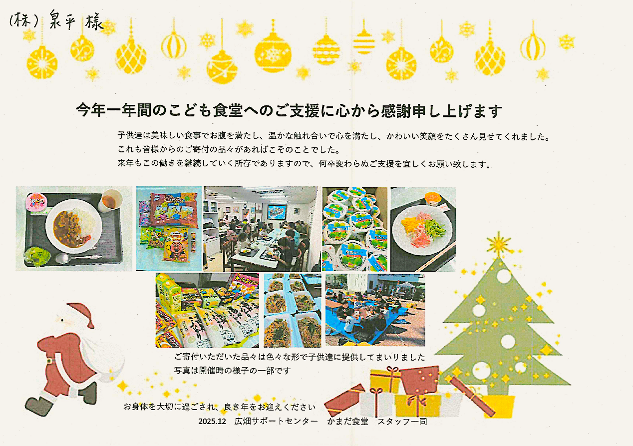 2025.12.25こども食堂さまより素敵なお便りが届きました!