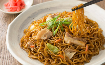 オリジナルのソースを使用し、鉄板で焼き上げた風味や色合いを再現した焼きそば。